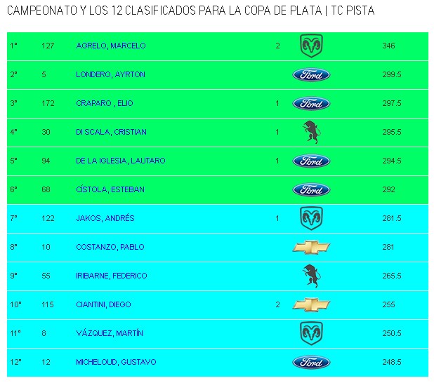 Acompañado por Andi Jakos y Ayrton Londero, el TC Pista culminó su etapa regular con una definición vuelta a vuelta entre Santiago Álvarez y Gustavo Micheloud que pelearón por entrar en el puesto 12. Finalmente el de Comodoro Rivadavia logró superarlo a Álvarez y se aseguró su ingreso a la definición del campeonato.