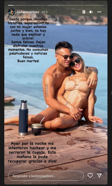 “Esta mañana la pude recuperar, gracias a Dios”, concluye el contundente descargo de Lautaro Martínez.