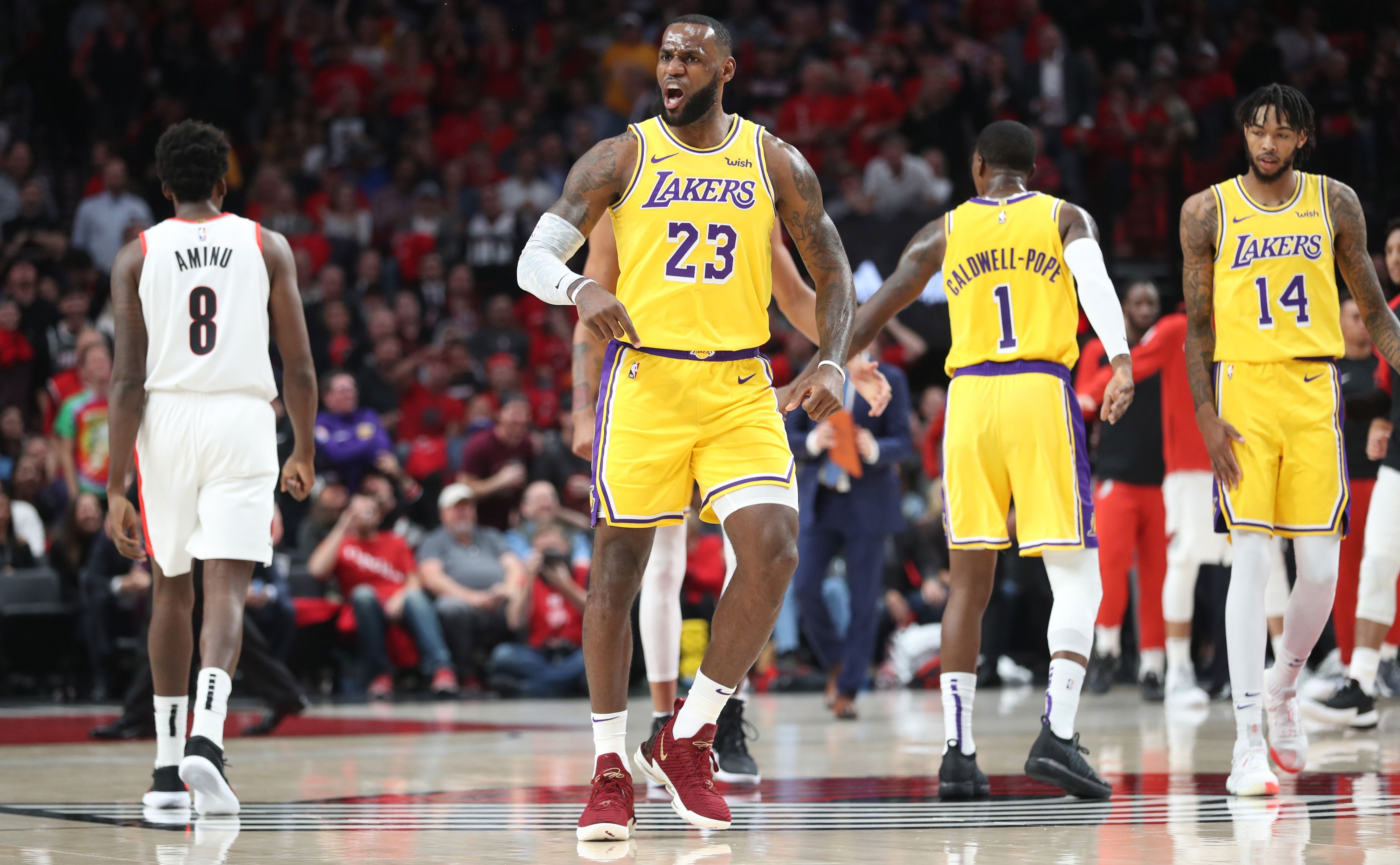 El alero LeBron James debutó en Los Ángeles Lakers con una derrota ante Portland, en el arranque de una nueva temporada de la NBA. A pesar de la gran actuación que tuvo James, Los Ángeles Lakers no pudieron contra Portland y cayeron 129 a 119. La flamante incorporación de los Lakers anotó 26 puntos y capturó 12 rebotes, demostrando todo su talento con una serie de volcadas.