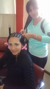 La boxeadora sanjuanina pasó por la peluquería y eligió que su look para esta noche sean trencitas bien tiradas para atrás.