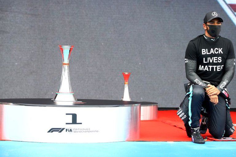“Yo les dije: ‘Yo voy a hacerlo, pero ustedes hagan lo que sientan’. Estoy muy agradecido con aquellos que se arrodillaron conmigo. Creo que es un mensaje poderoso, pero que no cambiará el mundo. Esta es una cuestión mucho más grande en todo el mundo. Cada uno tiene el derecho a tomar sus propias decisiones, yo sentí que era correcto hacerlo”, dijo Hamilton luego de la carrera. El inglés fue uno de los máximos impulsores de este gesto. Sin embargo, aseguró que no les pidió a sus colegas que lo acompañen. Aunque evitó criticar directamente a Max Verstappen, Charles Leclerc, Kimi Räikkönen, Daniil Kvyat, Carlos Sainz y Antonio Giovinazzi -los seis pilotos que no se arrodillaron- expresó su decepción por su negativa a sumarse a la iniciativa.
