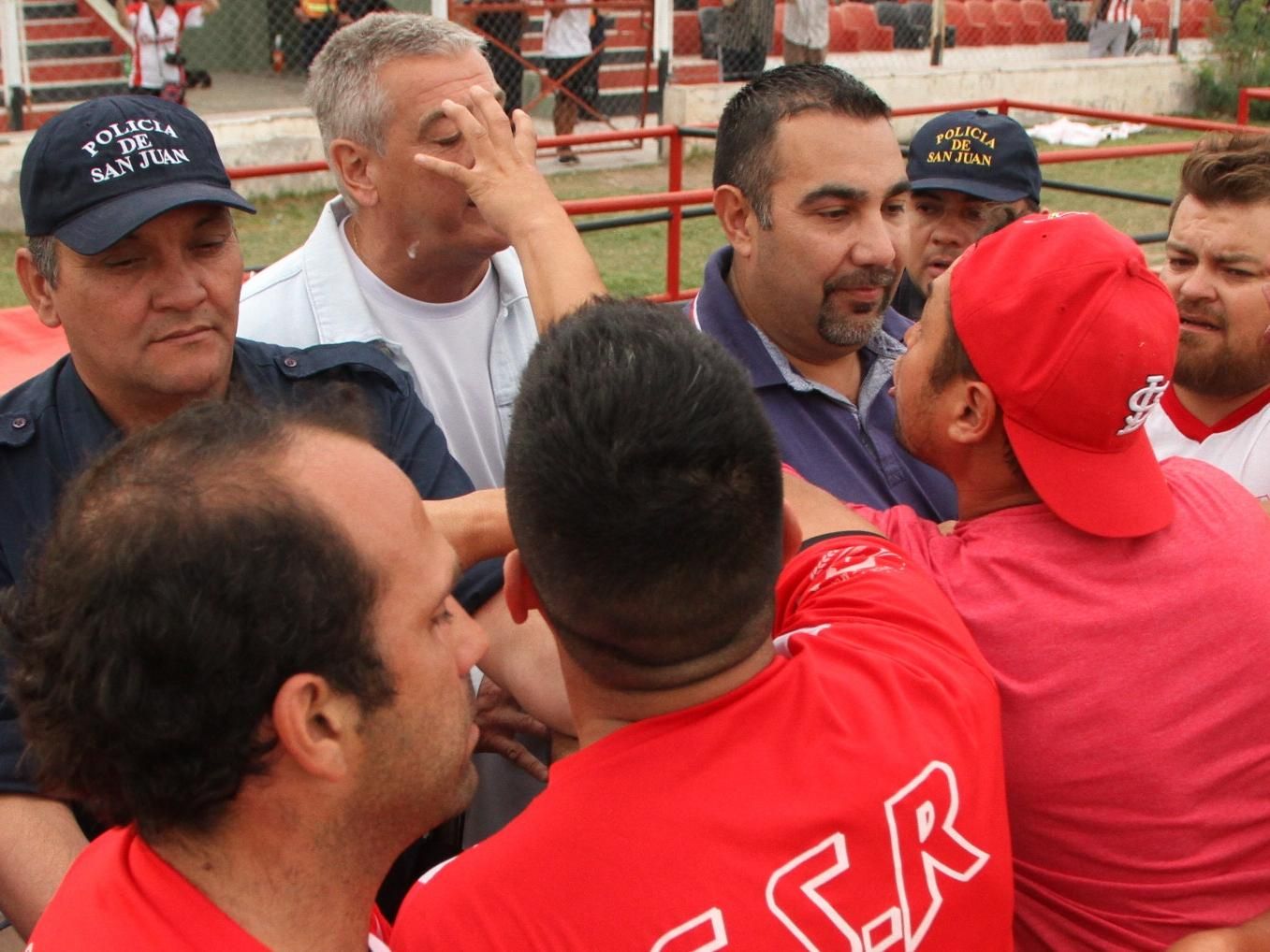 Era fiesta completa. Dos hinchadas, cancha con excelente marco y dos equipos con ambiciones parecidas. Todo bien, todo intenso pero luego llevado al descontrol cuando se desencadenó el resultado final y lejos de reclamar al juez Moreno, los hinchas de Rivadavia y hasta los propios jugadores de La Bebida decidieron que el blanco de su impotencia fuera el presidente de la Liga, Alberto Platero, que pasó un momento horrible, recibiendo insultos y escupitajos sin justificación.