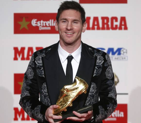 Lionel Messi recibió ayer en Barcelona su tercera “Bota de Oro” consecutiva, un logro nunca antes alcanzado en la historia del fútbol mundial, como reconocimiento a los 46 tantos que lo convirtieron en el máximo anotador de las ligas europeas en la temporada 2012-2013.