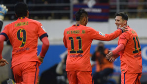 Durante la primera parte, el elenco dirigido por Luis Enrique fue ampliamente superior, algo que quedó sentado en la diferencia en materia de tenencia de balón. Sin embargo, los catalanes recién pudieron pisar con fuerza en el área pasada la primera media hora de juego. A pesar de que contaba en ataque con el poderoso tridente Messi-Neymar-Suárez, el Barcelona recién pudo llegar con peligro a los 31 minutos.