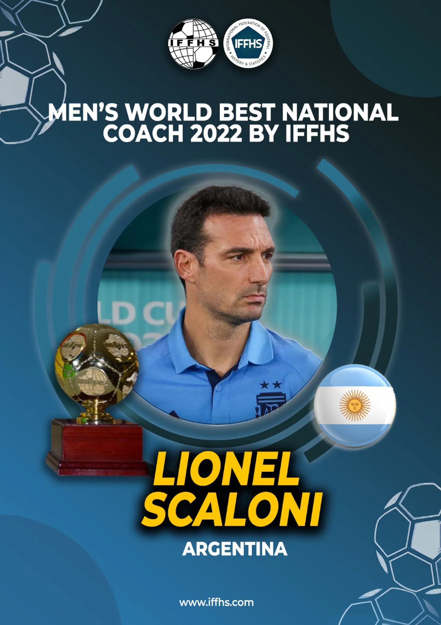 Lionel Scaloni, entrenador del seleccionado argentino campeón del mundo en Qatar 2022, fue elegido este domingo como el mejor técnico de 2022 por la Federación Internacional de fútbol, Historia y Estadística (Iffhs).