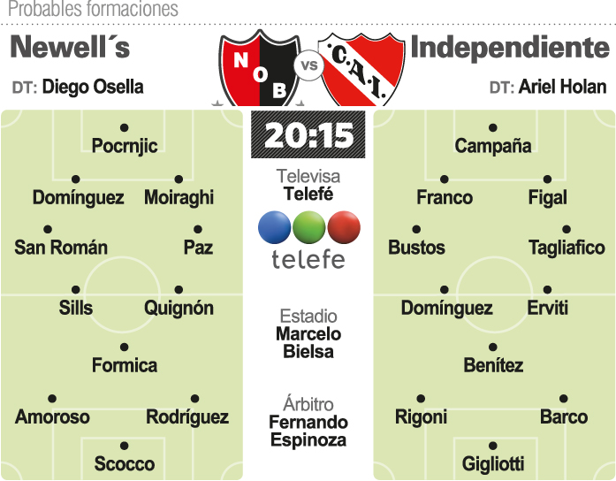 Los partidos Newell’s Old Boys-Independiente y San Lorenzo-Rosario Central serán los atractivos que tendrá hoy la jornada en la continuidad de la vigésimo tercera fecha del torneo de Primera División. Además, Colón de Santa Fe, de gran momento, recibirá a Atlético Tucumán y habrá un duelo clave por la permanencia en Sarandí, entre Arsenal y Olimpo. La fecha también tendrá acción en Florencio Varela, entre Defensa y Justicia y Godoy Cruz, y en Mar del Plata, en un choque de necesitados entre Aldosivi y Huracán. Pese a sus problemas institucionales y económicos, Newell’s realiza una gran campaña en el campeonato y hoy irá por su tercera victoria consecutiva, con los mismos once que vencieron 1-0 a Huracán en la fecha pasada. Enfrente estará Independiente, de buen andar de visitante, y contará con el regreso a la titularidad de Walter Erviti, por el uruguayo Diego Rodríguez.