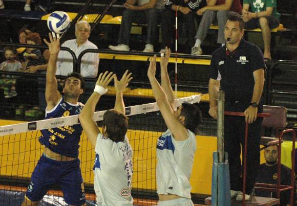 La cuarta manga fue avanzando punto a punto hasta que entraron en la zona de definición, y fue el sanjuanino que viste la azul y oro, Alejandro Toro, quien metió una tapa a Evandro, Bonini frenó a Olteanu y empataron el juego con el 25-20.