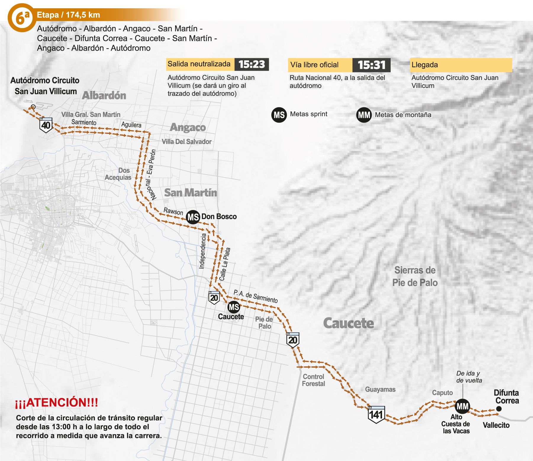La etapa tendrá como punto más lejano el santuario a la Difunta Correa, ubicado en Vallecito, con todo lo que conlleva ir hasta allí, debiendo sortear dos veces la Cuesta de las Vacas.
