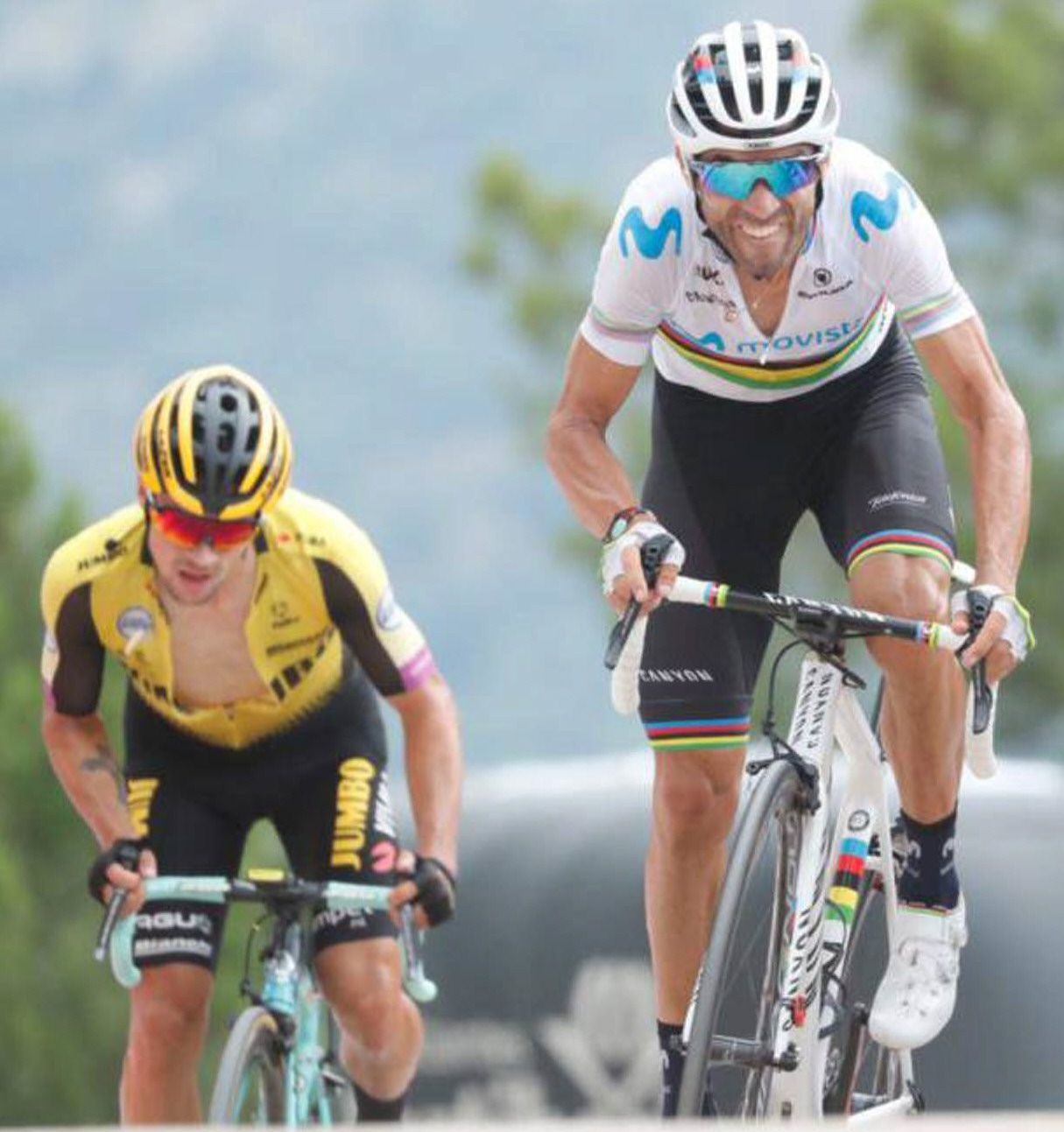 Su compañero Nairo Quintana parecía tener piernas como para hacer un ataque largo y abrir hueco, pero no dio continuidad a sus cambios de ritmo constantes. Quizá porque vio que quien más sufría era Valverde, con Primoz Roglic y "Superman" López atentos a sus movimientos.