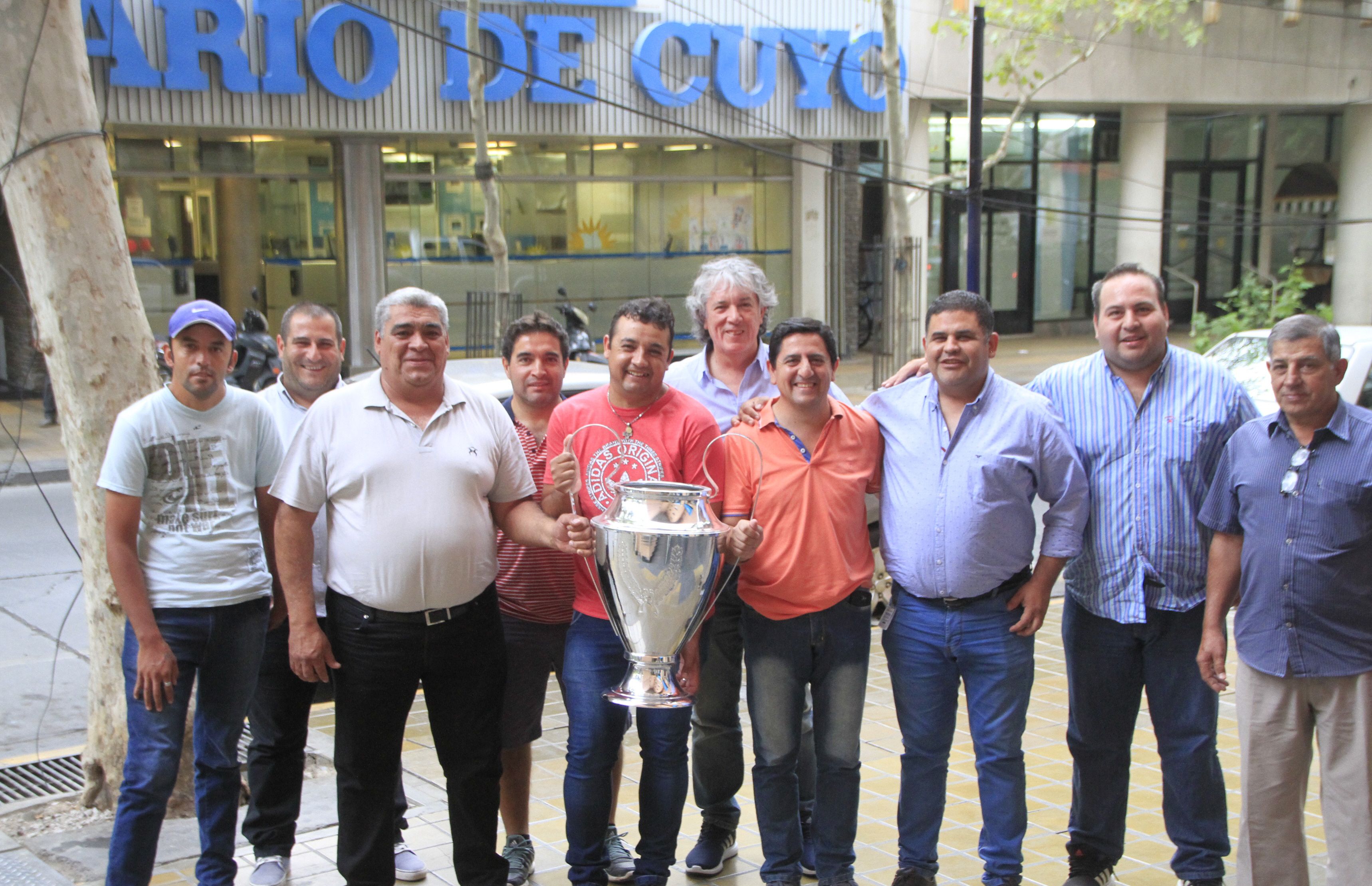 Copados. Los integrantes de Federación Sanjuanina de Fútbol lucen la Copa de Clubes Campeones-Copa DIARIO DE CUYO que estará en juego para la 52da edición que larga el 12 de enero próximo.