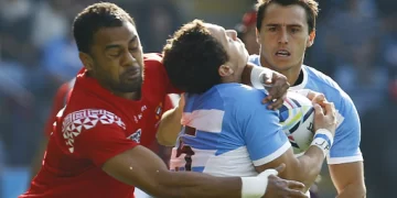 Inglaterra, 4 de octubre.- El seleccionado argentino de rugby, Los Pumas, venció hoy a Tonga por 45-16 en Leicester y quedó a un paso de acceder a los cuartos de final de la octava Copa del Mundo.