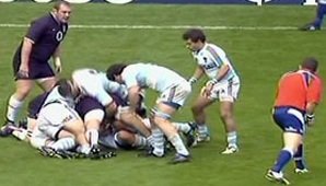 En una desconcentración de la marca argentina en el centro del campo, llego el try de Banahan para Inglaterra, que fue convertido por Wilkinson.
