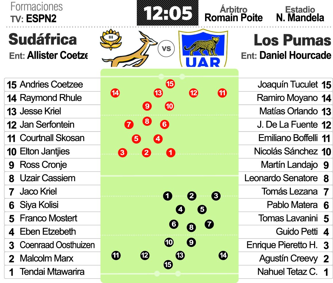 El seleccionado argentino de rugby, Los Pumas, visitará hoy a Sudáfrica en Port Elizabeth, en su debut en la edición 2017 del Rugby Championship, torneo en el que también participan Australia y Nueva Zelanda. El encuentro entre Los Pumas y Springboks se disputará a las 12.05 de Argentina, en el Nelson Mandela Bay Stadium, con transmisión de ESPN 2.