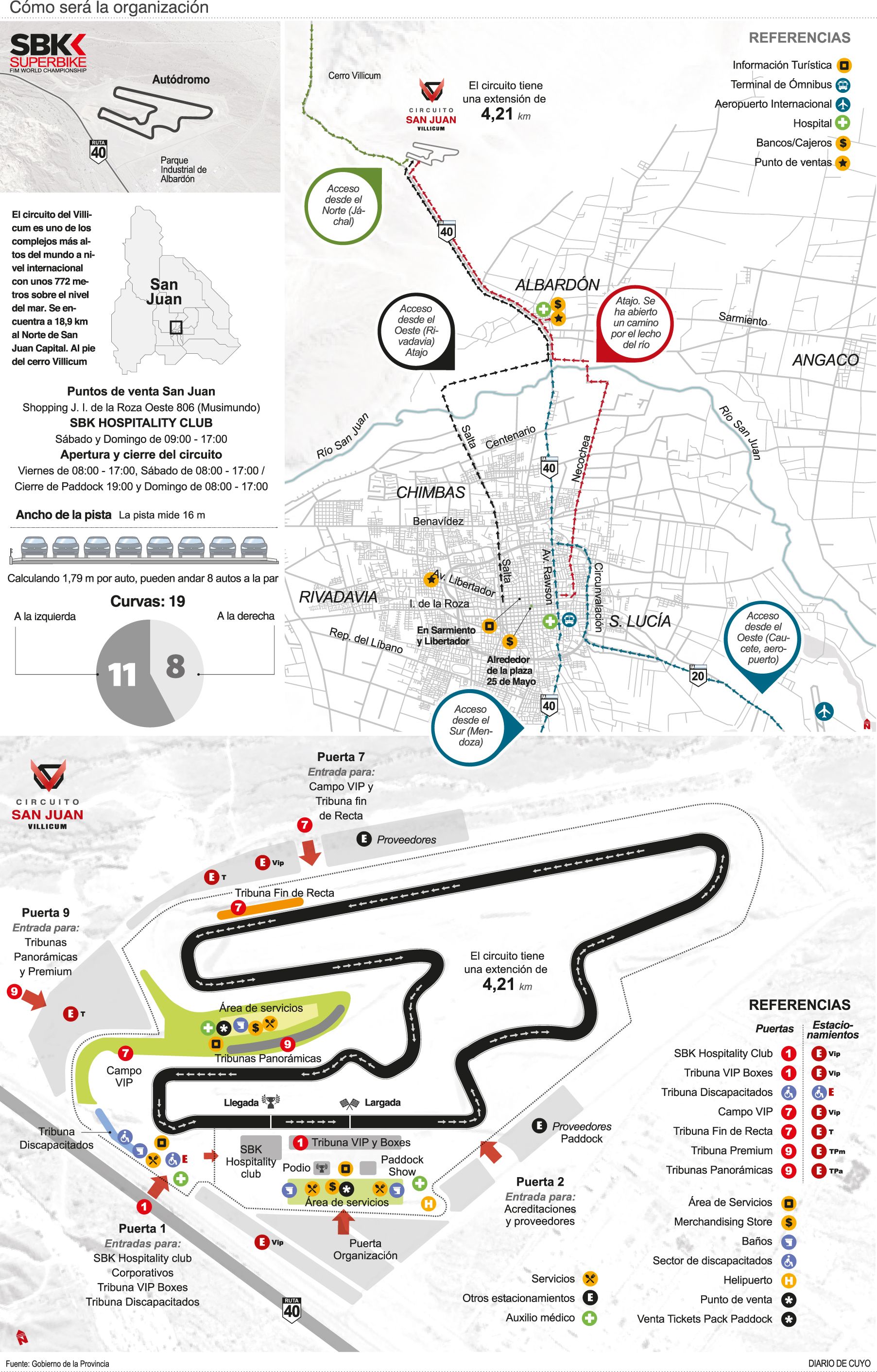 El detalle con cada uno de los lugares para ingresar al complejo.