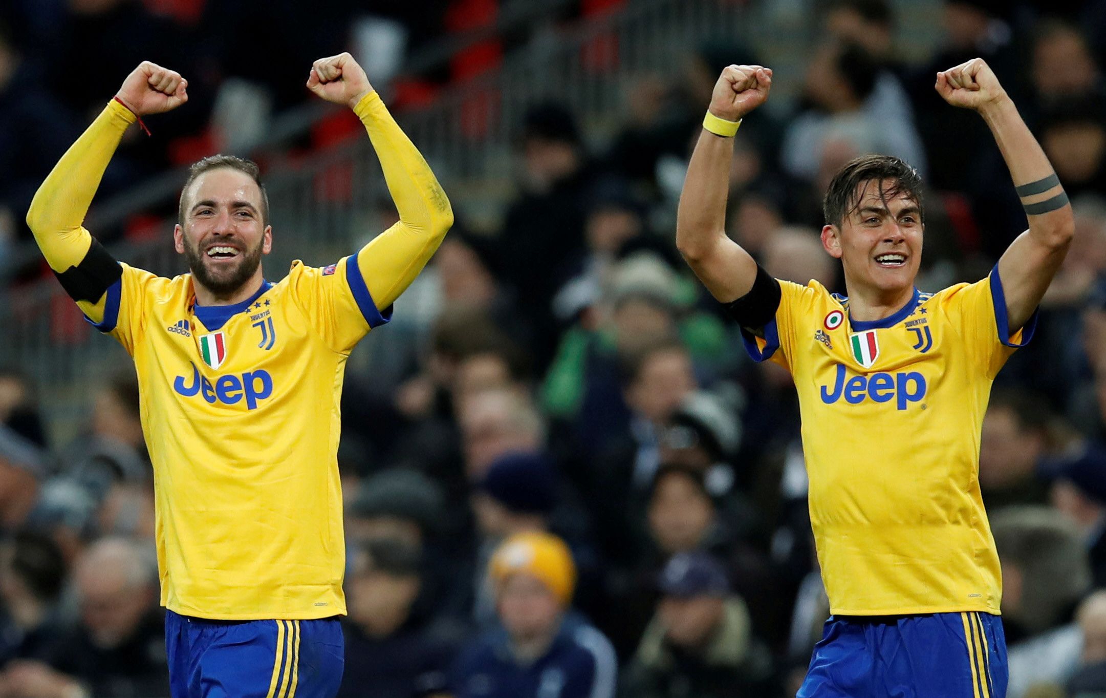 Los delanteros argentinos Gonzalo Higuaín y Paulo Dybala lideraron ayer la clasificación de su equipo, Juventus de Italia, ante Tottenham de Inglaterra, conducido por Mauricio Pochettino, al imponerse por 2-1 (4-3 en el global) como visitante, en el partido de vuelta de los octavos de final de la Liga de Campeones de Europa.
