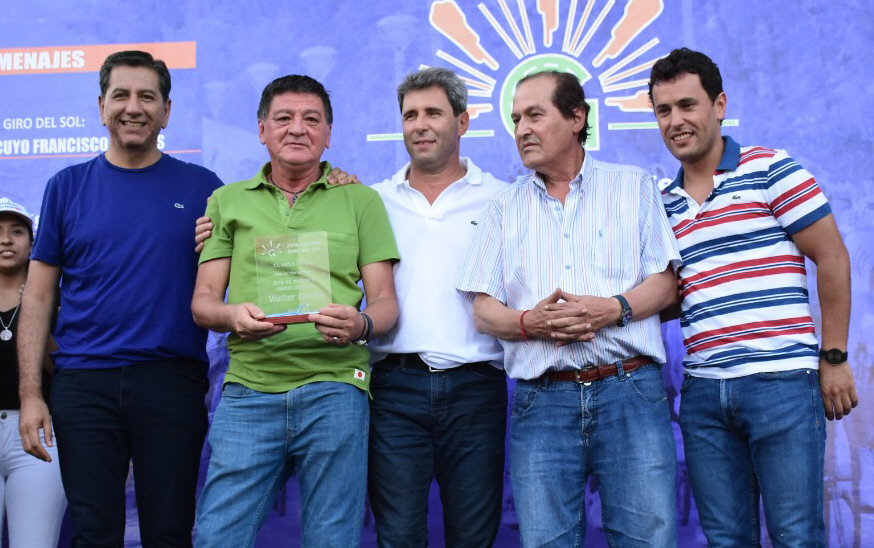 El jefe de Deportes de DIARIO DE CUYO, Walter Cavalli, recibió una plaqueta de parte de Juan Chica a quien acompañaron el Gobernador Sergio Uñac, el Ministro de Desarrollo Humano, Fabián Aballay, y el secretario de Deportes, Jorge Chica.