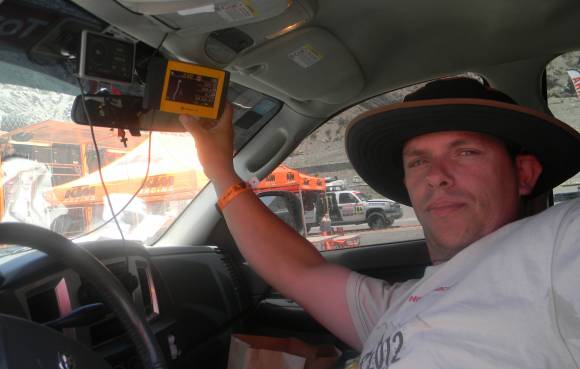 “Nos controlan con este aparatito que se llama Tripy”, dijo señalado un GPS. “Esta mañana salió Ariel, desayunamos en el vivac de San Rafael y llegamos acá luego de recorrer 410 kilómetros”, explicó quien, entre otras cosas traslada 100 cubiertas para la moto. “Todos los días se rompe alguna”, amplió.