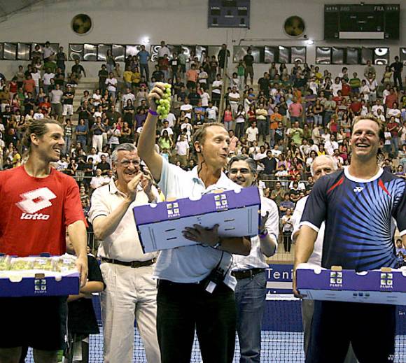 Los ex top ten, que habían perdido sus cruces el sábado, pelotearon con los chicos durante unos 20 minutos y luego posaron para las fotos y firmaron unos autógrafos antes de volver rápidamente al hotel.