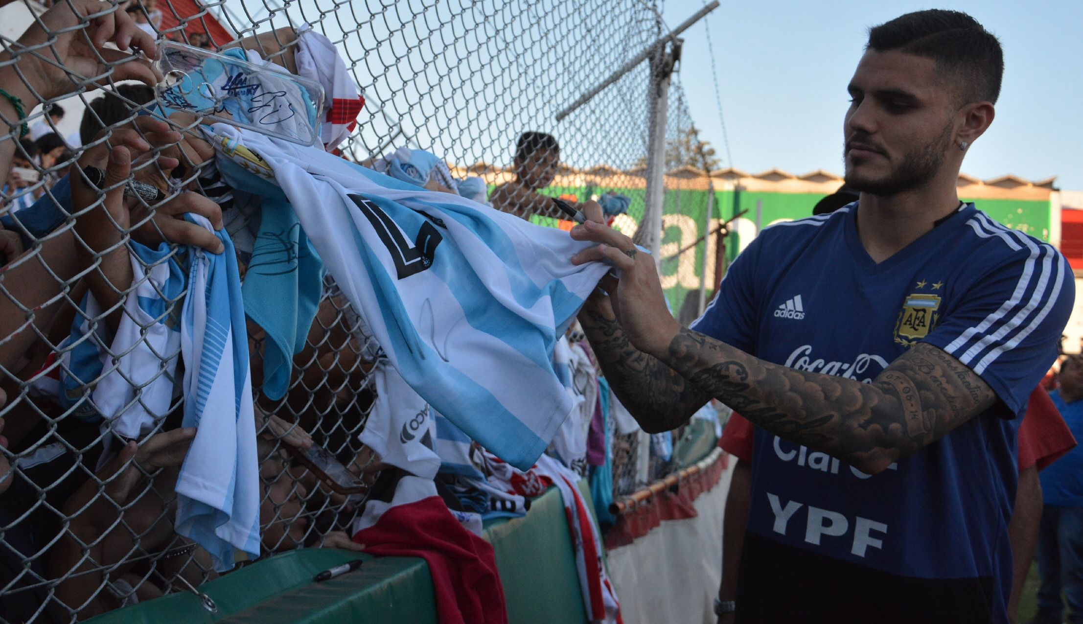 Amable. Mauro Icardi se dedicó unos minutos luego de la práctica a firmarle camisetas a los hinchas.