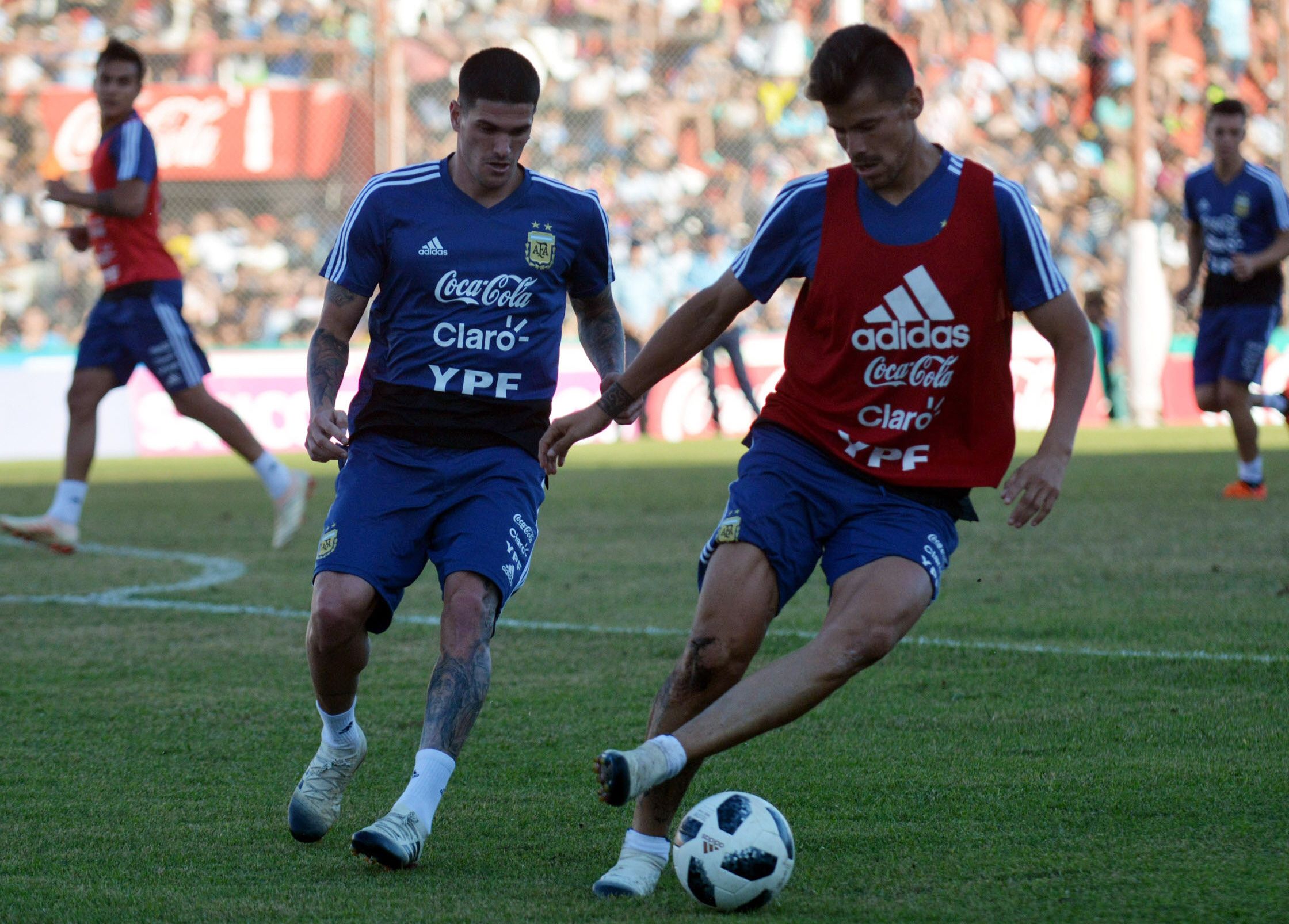 La práctica de fútbol sirvió para que Scaloni parara varias formaciones de cara al partido de mañana ante los mexicanos.