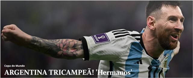 Globoesporte de Brasil destacó a la Selección y a Messi y tituló "Gigantesco". "La Argentina de Messi es tri en los penales", agregó ese portal. Por su parte, diario Lance, del mismo país, también destacó el logro de la "Scaloneta": "Es tu momento, Leo. Argentina gana el tri ante Francia y corona a un genio Messi".