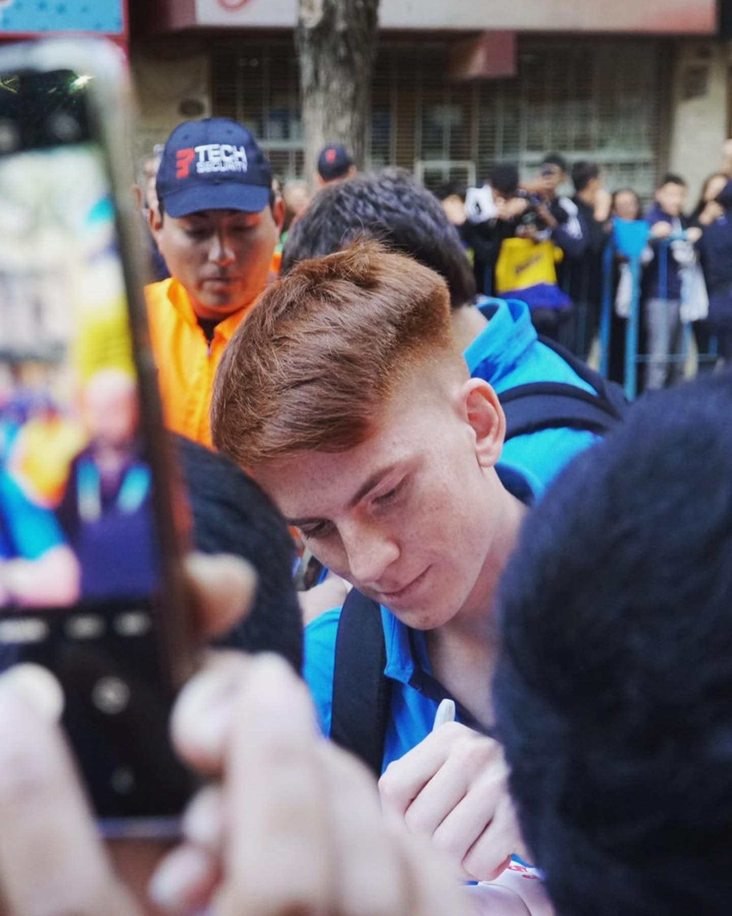 El más solicitado por quienes vistieron guardapolvo o uniforme fue Valentín Barco, el lateral izquierdo de Boca, que no tuvo ningún inconveniente en posar junto a los fanáticos, algunos hasta de su misma edad.