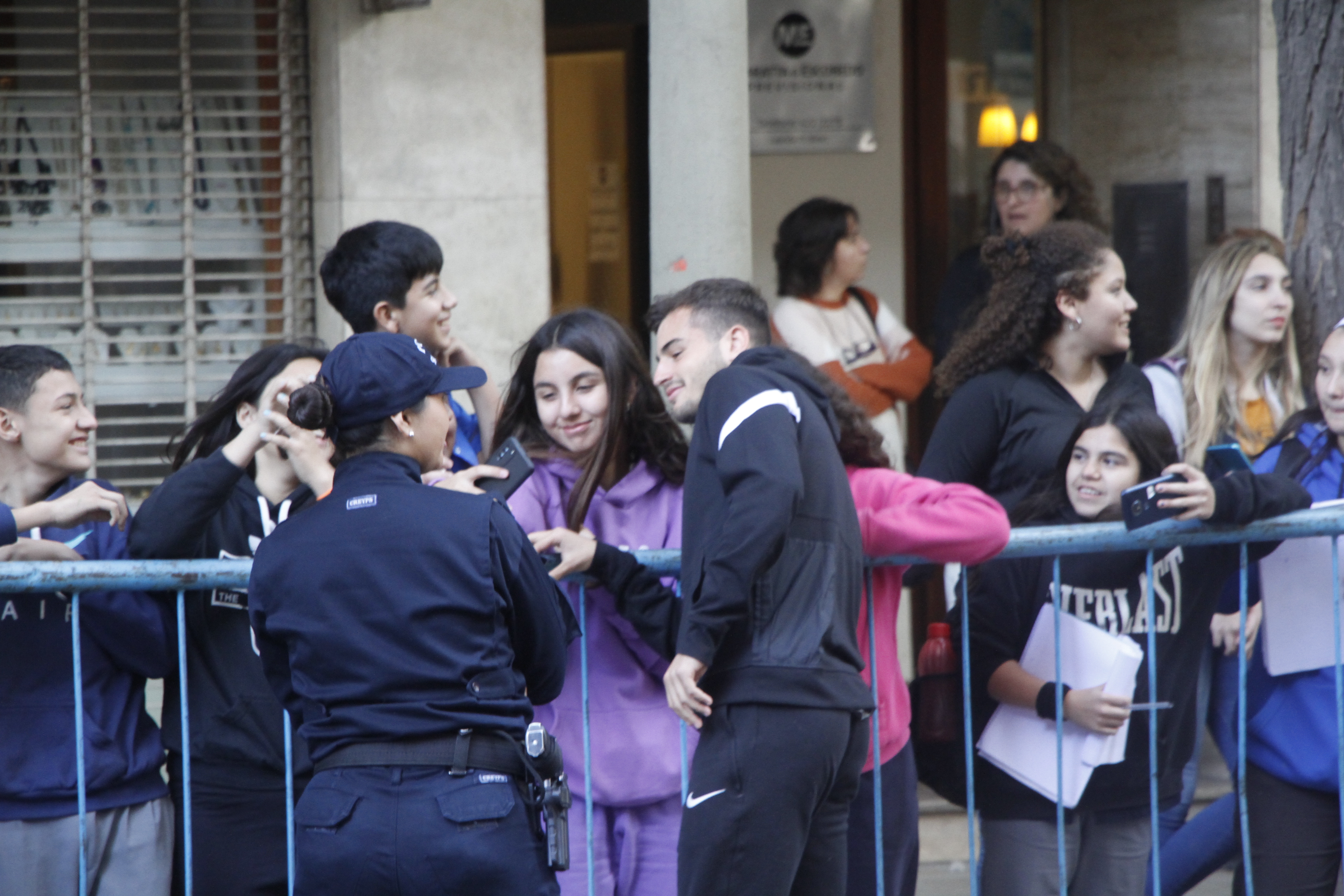 Como la hora de llegada coincidió con la salida de algunas escuelas céntricas y con el ingreso de otras, los alumnos salieron antes o entraron después, pero se hicieron un tiempo para alentar a sus ídolos, pedirles una foto y también un autógrafo.
