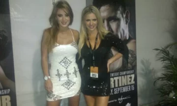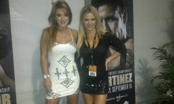 Las diosas estuvieron en el VIP del estadio y compartieron en Twitter imágenes del sector exclusivo en las plateas y del ring.