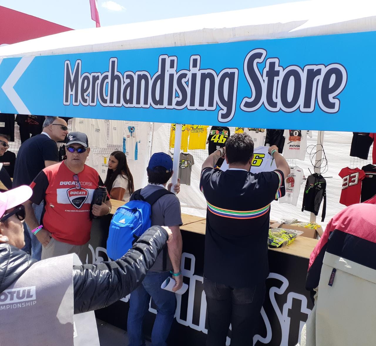 Es el stand que lidera en punta después de los foods, en la zona de paddocks del Circuito San Juan-Villicum. Allí tres empleados sanjuaninos no dan abasto atendiendo a miles de personas que se acercan para comprar indumentaria del Superbike. Pasado el mediodía de este sábado el stock que quedaba eran remeras en su mayoría.