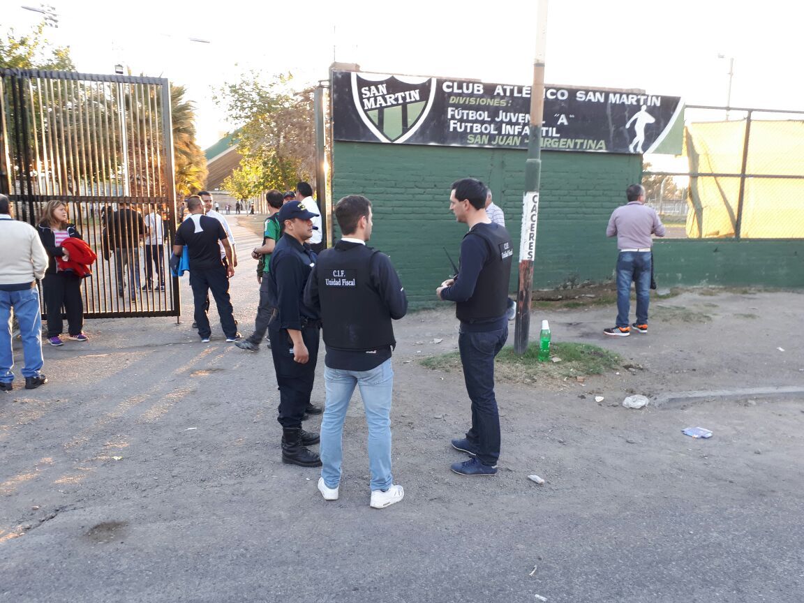 Este domingo, al igual que otros eventos de grandes convocatorias como el Superclásico en el Estadio del Bicentenario, los integrantes del cuerpo de investigadores de flagrancia trabajaron con personal policial en la cancha de San Martín para el partido ante River.
