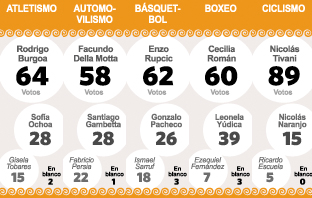 La terna fue ganada por Cecilia Román, campeona mundial de peso gallo en la órbita de la FIB (Federación Internacional de Boxeo). Entregó Carla Acosta, periodista de Tiempo de San Juan.
