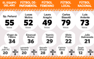 Carlos Biasotti, figura de Peñarol, campeón del Torneo de Invierno y de Verano, fue el ganador. En su lugar, su esposa Patricia González recibió el premio entregado por Daniel Arias, editor de Fotografía de DIARIO DE CUYO.