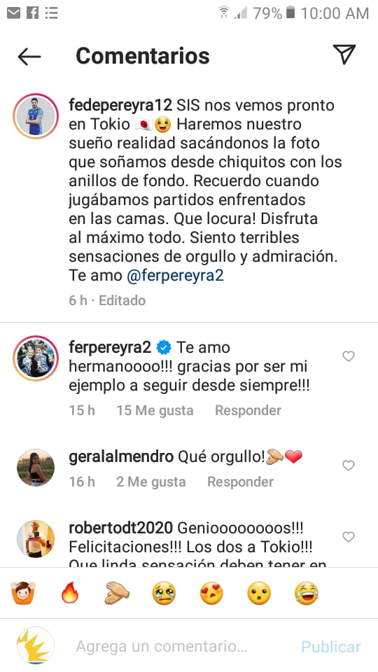 "Sis (hermana) nos vemos pronto en Tokio. Haremos nuestro sueño realidad sacándonos la foto que soñamos desde chiquitos con los anillos de fondo. Recuerdo cuando jugábamos partidos enfrentados en las camas. Que locura, disfrutá al máximo todo. Siento terribles sensaciones de orgullo y admiración. Te amo", publicó Fede en su Instagram.
