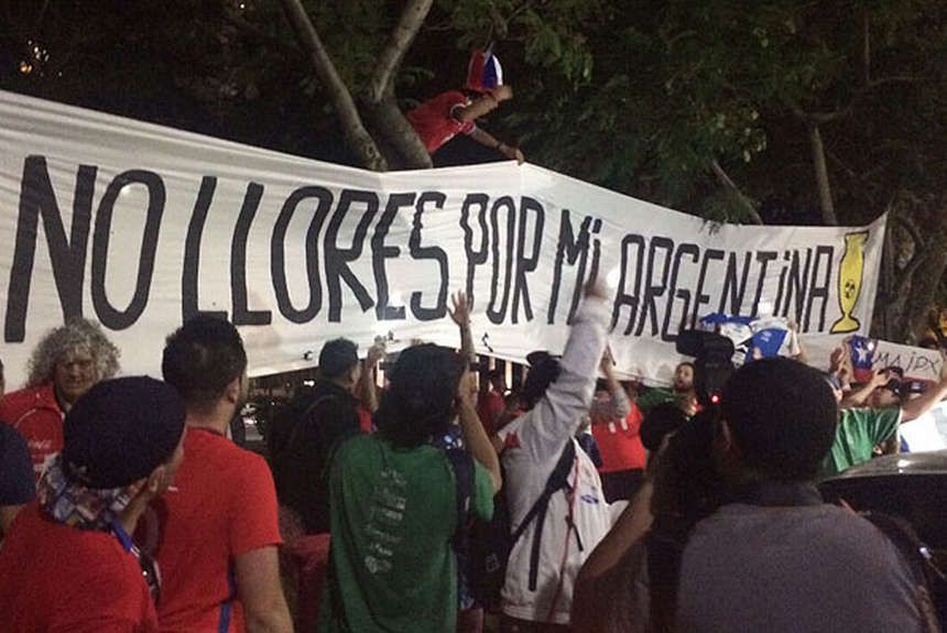 Cientos de trasandinos ovacionaron a sus ídolos a medida que bajaban del micro, mientras entonaban varios cantitos provocadores. "Argentina, decime qué se siente, saber que Chile es tu papá", rezaba uno de los temas, copiando al de la hinchada argentina en el Mundial de Brasil. También colgaron una bandera con otro mensaje polémico: "No llores por mí, Argentina". Lo cierto es que, más allá de las dos definiciones coperas (ambas por penales), la Roja ostenta un solo triunfo oficial ante el seleccionado nacional. En la cancha de River se esperan alrededor de seis mil visitantes.