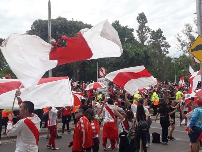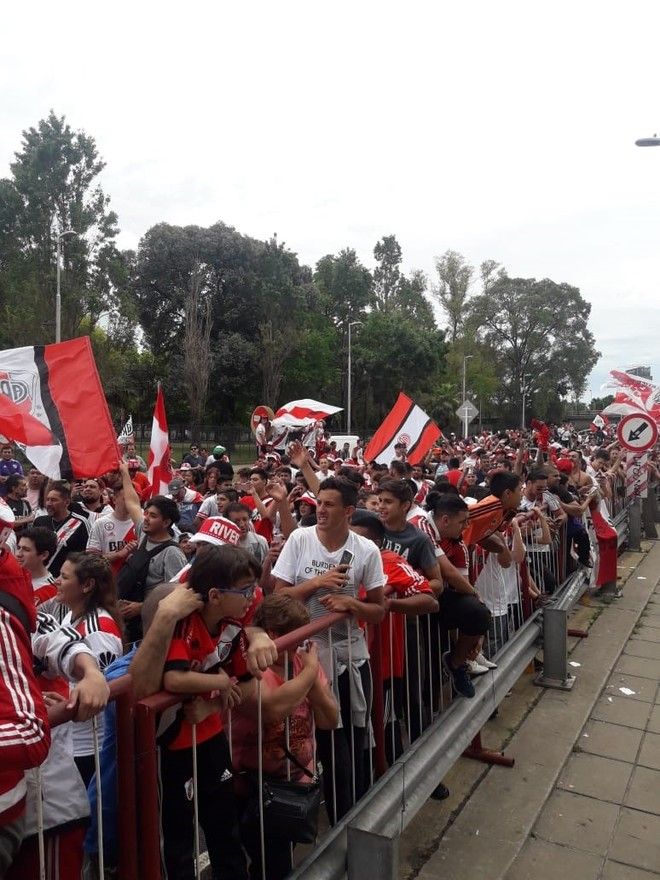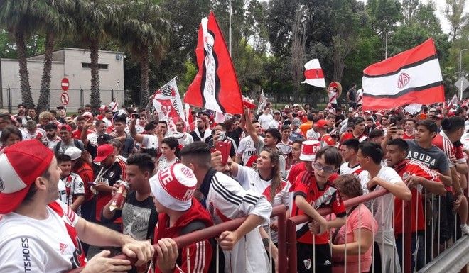 Las intensas lluvias de sábado no impidieron que cinco mil hinchas de River se acercaran a bancar al equipo en las inmediaciones del Monumental para darle su apoyo antes de partir a la Bombonera. Y este domingo, ya con calor y el cielo despejado, la imagen se repitió. Miles de simpatizantes llenaron de color la zona y bancaron a los jugadores antes de la subida al micro.