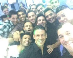 "Gracias por hacerme tan Feliz!!!!! Son muy grandes!!!!", escribió en Twitter, Javier Mascherano, quien publicó una foto en la que también aparecen Pablo Zabaleta, Lionel Messi, Ezequiel Lavezzi, Federico Fernández, Gonzalo Higuaín, entre otros.