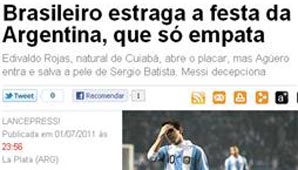 "El mejor jugador del mundo no jugó a nada", publicó el diario deportivo Lance en alusión a Lionel Messi, y agregó que "un brasileño anotó un gol (Edivaldo Rojas, nacionalizado boliviano) y los hermanos apenas empatan".