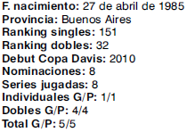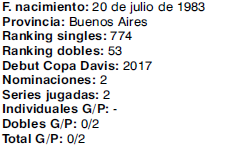 Horacio Zeballos volverá a la Davis después de cuatro temporadas. No jugaba desde la serie de play-off del Grupo Mundial en 2014 frente a Israel, que Argentina ganó por 3-2. El marplatense, que está 32 en el ranking mundial en dobles, afrontará su novena convocatoria y se presume que puede hacer el dobles con Máximo González, número 53 del ranking en parejas. Machi jugará por tercera vez la Davis.