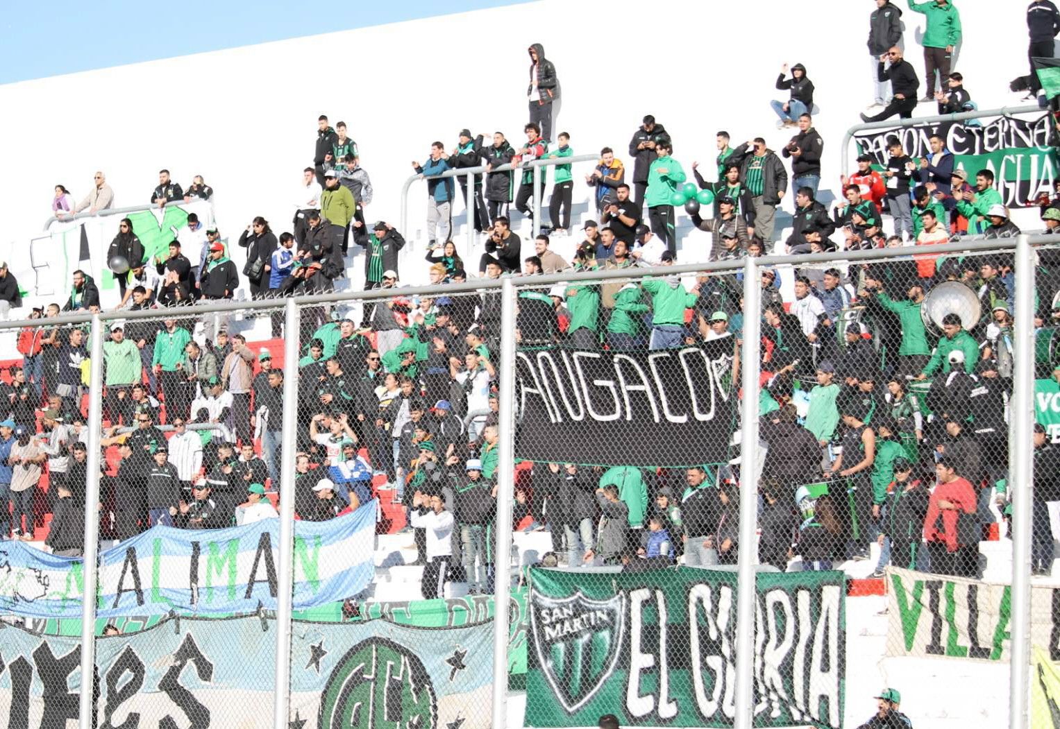 La larga espera por ver a San Martín se plasmó ayer en la popular del estadio Nuevo Francisco Urbano. La Copa Argentina brinda la posibilidad que simpatizantes de ambos equipos puedan asistir (lo que está prohibido en la Superliga) y ayer más de 500 hinchas del equipo verdinegro estuvieron alentando al equipo.