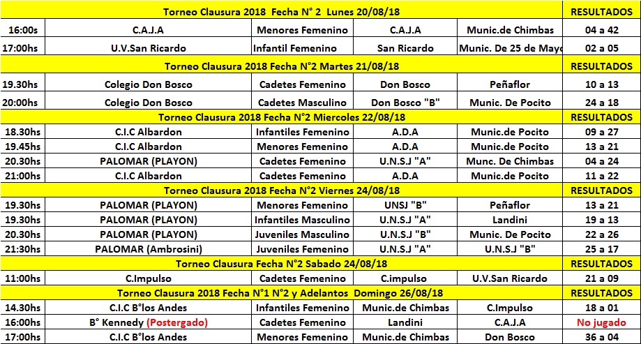 Los resultados del handball sanjuanino