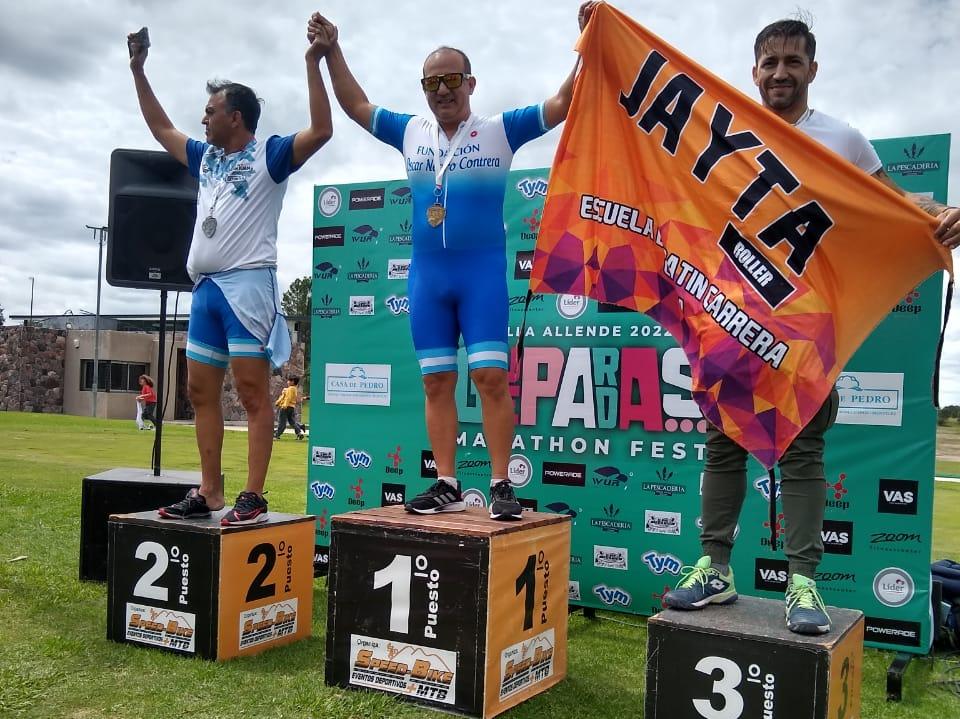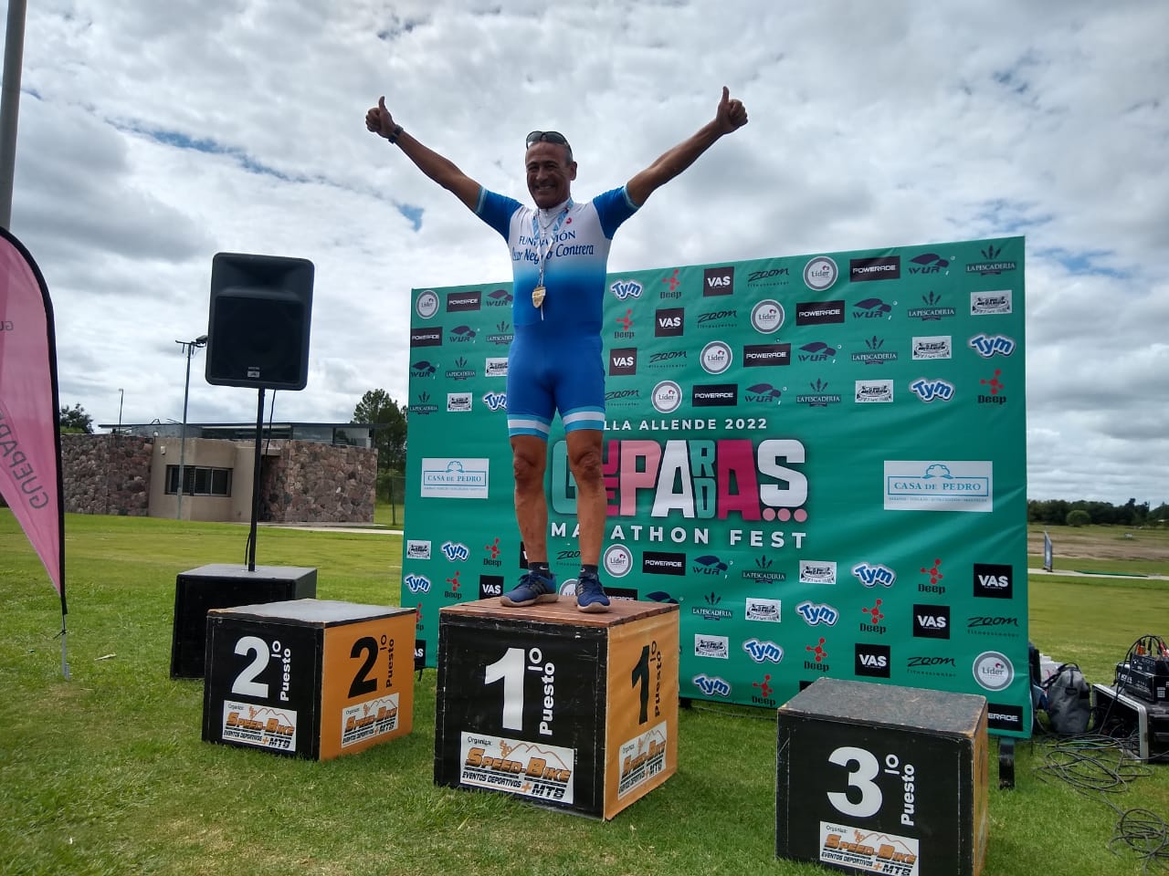 El reconocido Oscar Contrera (62) de la Fundación que lleva su nombre hizo su esfuerzo en la máxima distancia de la disciplina, atravesando la meta en la 6ta ubicación de la general y quedando 1ro en la categoría Máster D. En los 42km, Federico Andino (40), representante del Club Vial San Juan, llegó 4to en la general mientras que en su categoría (Máster B) obtuvo la presea dorada.