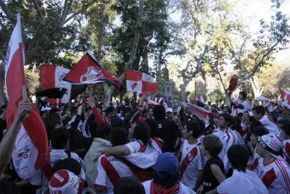 San Juan, 23 de junio.- Algunos sanjuaninos fueron hasta Núñez para vivir en el Monumental el regreso de River a la elite del fútbol argentino y otros, los que se quedaron, festejaron en la Plaza 25 de Mayo.