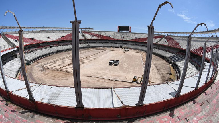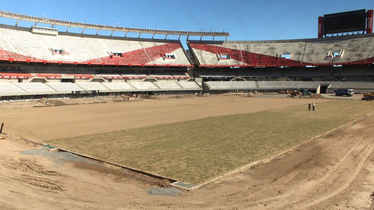 Con máquinas trabajando las 24 horas del día y tras realizar varias excavaciones, en las que se produjeron descubrimientos históricos como las herraduras del hipódromo de comienzos del siglo XX o un tramo clausurado del túnel de árbitros que había quedado en desuso a partir de 1977, las obras avanzan en el Monumental y ahora llegó la hora de avanzar con la instalación del nuevo césped.