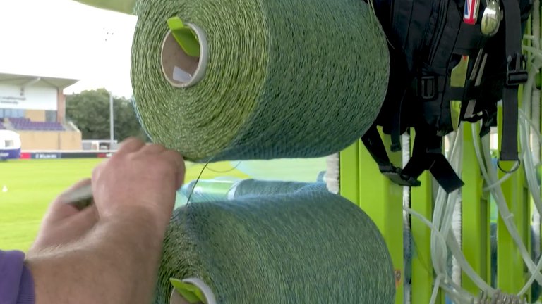 El césped contará con un sistema que utiliza tecnología de cosido. Una máquina inyecta los hilos de césped sintético a 20 cm de profundidad logrando una unión perfecta entre los componentes sintéticos y naturales y una mejor distribución vertical del crecimiento de raíces.