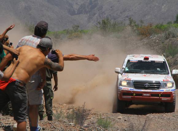 1- Para los sanjuaninos, el Diferimiento Pepsi, camino a Santa Clara, se mostró como el primer punto de contacto de la gente con el Dakar. Llegar no era sencillo pero el desafío entusiasmó a todos y desde El Acequión para arriba sobraron postales de lo que puede mover esta pasión inexplicable. Las condiciones del terreno, que en esta parte del circuito se ofrecía a la carrera mucho más cerca del espectador pues estaba a solo metros de la zona de estacionamiento, favoreció la elección de este primer foco de atención. Así, las pequeñas barrancas que bordeaban el río seco por el que bajaban desde Santa Clara, terminaron siendo plateas preferenciales para recibir en suelo sanjuanino a la troupe del Dakar. Si bien no fue escenario colmado, sobró platea para que el rally tuviera el marco que se merece por la calidad del espectáculo y por toda la inversión que se hace para poder concretarlo. Este puesto de espectadores tuvo a favor la chance de que a muy pocos metros de la ruta de acceso hubiera contacto directo con los competidores lanzados en pleno ritmo de competencia. Ese fue su punto fuerte. En contra le jugó tal vez haber sido el puesto de observación más lejano de los que estaban en oferta desde el Gran San Juan. Pero lo innovador de su naturaleza y la chance de ver muy de cerca a todos, lo pusieron en un lugar privilegiado para los amantes del rally Dakar en San Juan.
