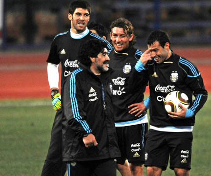 Sudáfrica, 30 de junio.- "Verón y Pastore pueden entrar", aseguró Maradona durante una entrevista en Fox Sports, durante la cual advirtió además que no va a cambiar el sistema táctico.
