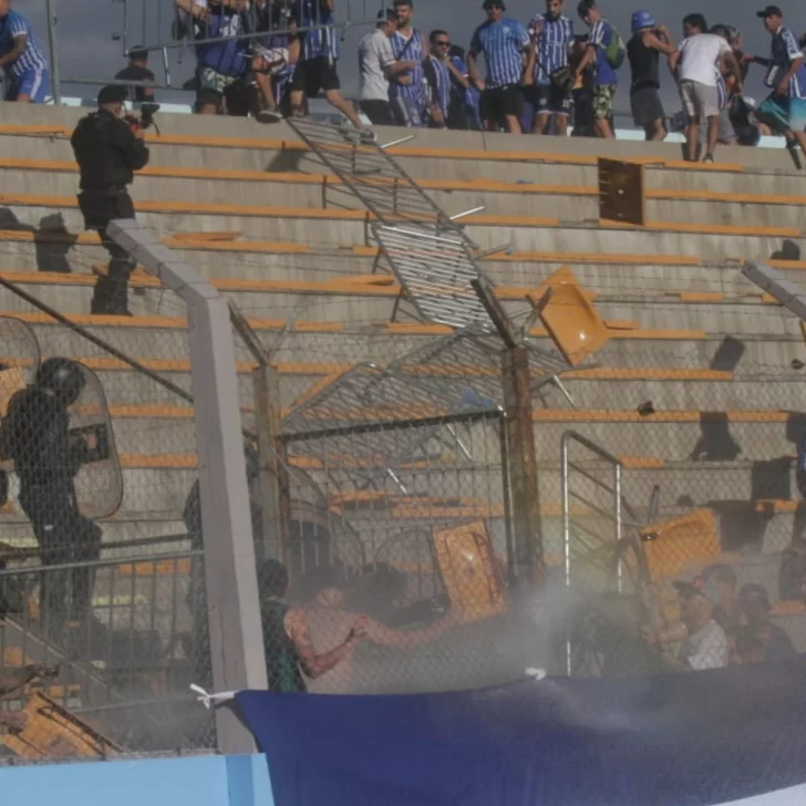Un centenar de fanáticos de Godoy Cruz se enfrentaron violentamente con una veintena de uniformados, los cuales terminaron retrocediendo ante el avance de la multitud mendocina. Una locura.
