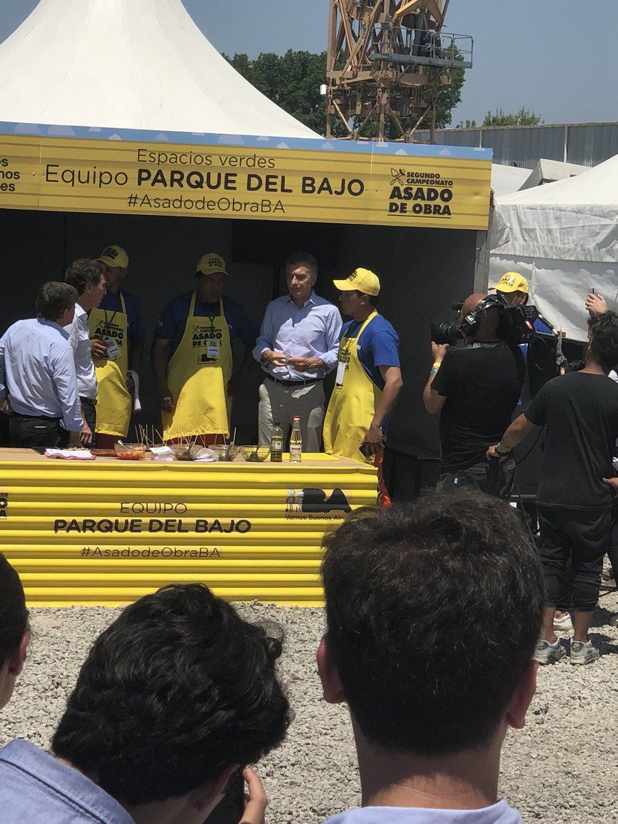 Al participar de la entrega de premios de un concurso de asado de obra, el jefe de Estado introdujo: "Son muy poquitos los argentinos que van a ir a la cancha de Boca y dentro de tres semanas a la de River, y somos millones los que lo vamos a ver desde nuestra casa, en el club, en el bar, con amigos".