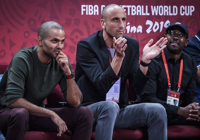De cerca. Manu viajó a China para ver a la selección en el Mundial. Ayer, observó la final junto a su ex compañero en San Antonio, Tony Parker.