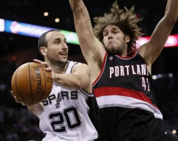 Emanuel Ginóbili aportó anoche 14 puntos en la victoria de San Antonio Spurs sobre Portland Trail Blazers 118-103, que dejó “match point” la serie semifinal que juegan al mejor de siete partidos por la Conferencia Oeste de la NBA. El escolta argentino jugó 29 minutos y presentó una planila de 2-8 en tiros de campo; 0-3 en triples y 10-10 en libres. Además, brindó cinco asistencias, bajó cuatro rebotes, cometió una falta, sumó dos robos y también dos pérdidas. Spurs lideran la serie 3-0 y en el cuarto juego que volverá a disputarse en el Moda Center de Portland, tendrán la chance de asegurarse la tercera final seguida de la Conferencia Oeste, cuyo título defienden. En caso de clasificarse, la jugarán con el ganador del cruce entre Los Angeles Clippers (1)-Oklahoma City Thunder (2). En la región Este, los Indiana Pacers de Scola se enfrentaban a Washington Wizards; mientras que Brooklyn Nets venció antenoche 104-90 al campeón Miami Heat y descontó 2-1 el global de la llave restante. “Hicimos un juego fantástico, con la defensa muy afilada, no perdimos muchas pelotas, mantuvimos la intensidad y movimos bien la pelota”, contó Ginóbili.
